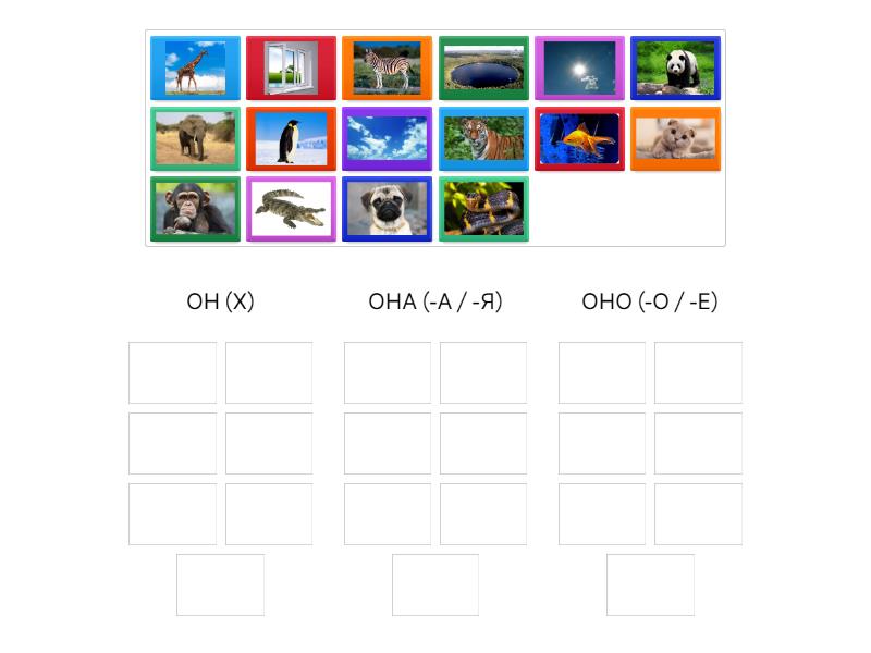 ОН (Х): , , , , , ОНА (-А / -Я): , , , , , , , ОНО (-О / -Е): , , , ,