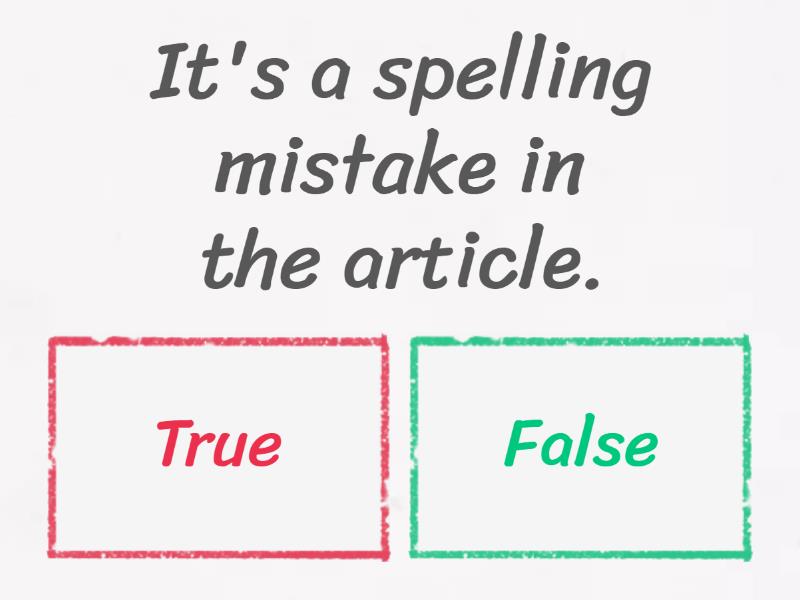 1) It's a spelling mistake in the article. a) True b) False 2) It's letter for you on the table. a) True b) False 3) It's not worth waiting any longer. a) True b) False 4) There's high time we embarked on our new project. a) True b) False 5) The situation is still the same. It has been no change. a) True b) False 6) Is there anything we are supposed to discuss at the meeting? a) True b) False 7) It's no use crying over spilled milk. a) True b) False 8) There was rainy yesterday. a) True b) False 9) There must be some explanation for this. a) True b) False 10) They live on a busy road. It must be a lot of noise. a) True b) False 11) There's no use crying over spilt milk. a) True b) False 12) I like where I live, but it would be nicer to live by the sea. a) True b) False 13) There's a quater to nine. a) True b) False 14) It didn't take us long to get there. a) True b) False