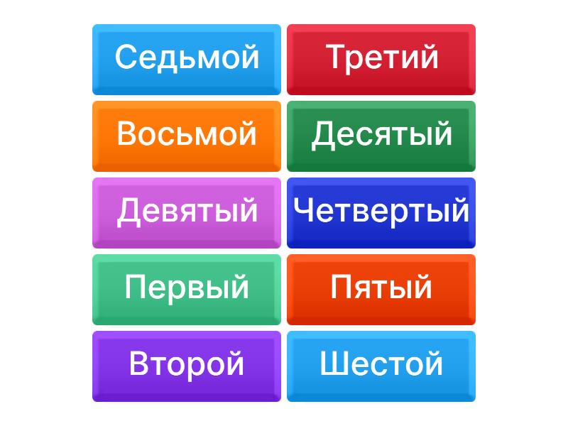 Первый - The first, Второй - The second, Третий - The third, Четвертый - The fourth, Пятый - The fifth, Шестой - The sixth, Седьмой - The seventh, Восьмой - The eighth, Десятый - The tenth, Девятый - The ninth,