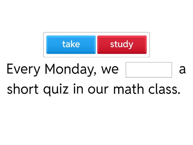 Every Monday, we ____ a short quiz in our math class. If you don’t ____ regularly, it’s easy to ____ the exams. Last week, I ____ two classes because I was sick. Mr. Thompson ____ us history with so much passion—it makes the subject exciting! I finally ____ my chemistry test after studying all night. Be careful not to ____ your homework; the teacher won’t accept late work. We always ____ something new in science class. I ____ _______ my notebook before the presentation. I couldn’t find it anywhere! She was nervous about the test, but she still managed to _______. ____