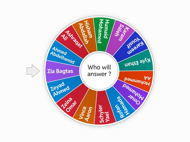 1) Ahmed Abdelhamid 2) Ashraqat Ali 3) Hisham Abdallah 4) Humaid Mohamed 5) Karam Saleh 6) Kareem Yousif 7) Kyle Ethan 8) Mohammed AA 9) Omar Mohamed 10) Rofan Hamada 11) Schyler Yael 12) Vince Aaron 13) Zeina Omar 14) Zeyad Ahmed 15) Zia Bagtas