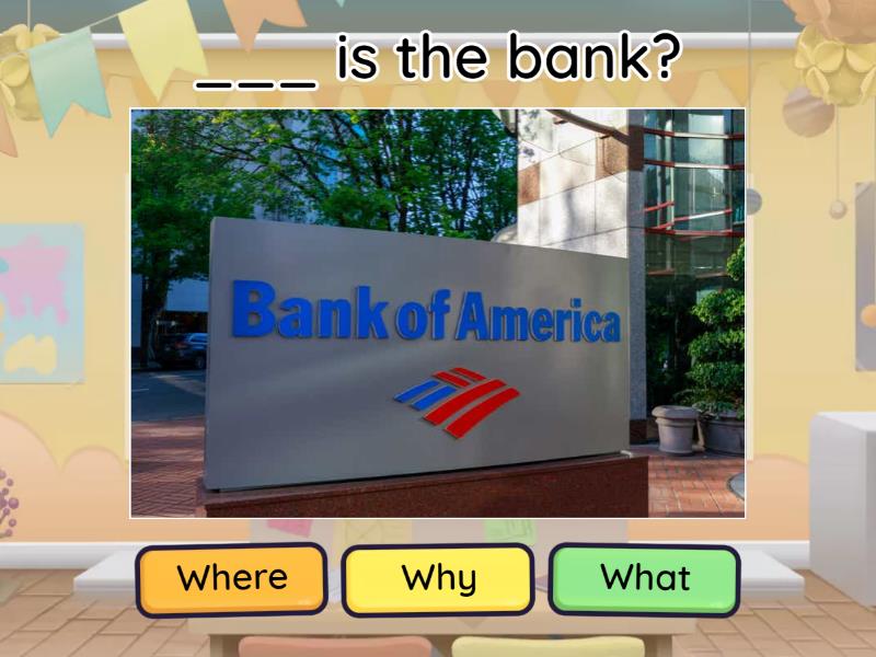 1) ___ is the bank? a) Where b) Why c) What 2) ___ is your favorite co-worker? a) Who b) Why c) When 3) ___ is your birthday? a) When b) Why c) Where 4) ____ does your brother live? a) Where b) Why c) When 5) ___ are you married to? a) Who b) Why c) When 6) ___ do you finish work? a) When b) What c) Who 7) ___ do you like your job? Because.... a) Why b) When c) Where 8) ___ do you do on Sundays? a) Why b) Where c) What