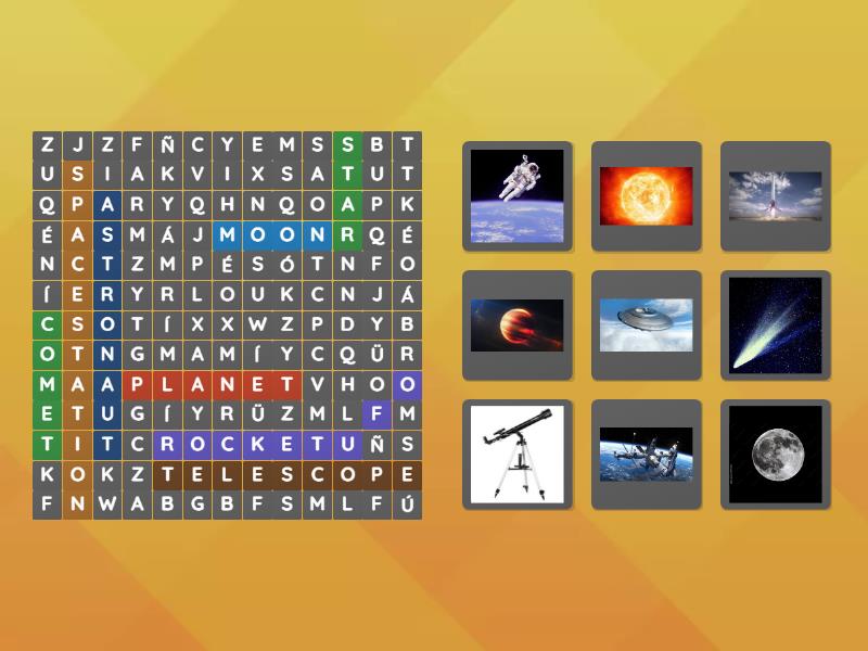 comet, rocket , planet , moon , telescope, astronaut , space station , star , UFO,