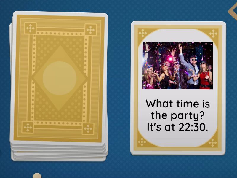 What time is the party? It's at 22:30., What time is the festival? It's at 14:00., What time is the hockey match? It's at 5:30 p.m., What time is the play? It's at 7:15 p.m., What time is the film? It's at 9:30., What time is the concert? It's at 8:30 p.m., What time is the football match? It's at 6:45 p.m..