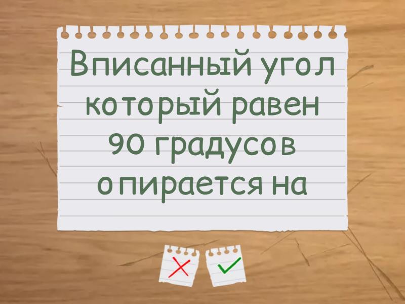 Окружность , Центр окружности, Радиус, Диаметр, Хорда, Свойства радиусов - в одной окружности все радиусы равны, Касательная - Прямая которая имеет с окружностью одну общую точку, Угол между касательной и радиусом в т касания - 90 градусов, Сколько градусов в окружности? - 360, Касательные проведенные к одной окружности из общей точки - между собой равны, Дуга окружности, Центральный угол это - угол вершина которого лежит в центре окружности, Свойство центрального угла - равен дуге на которую он опирается, Как определить дугу на которую опирается угол? - Убираем вершину угла и читаем оставшиеся точки которые лежат на окружности, Вписанный угол, Свойство вписанного угла - равен половине дуги на которую он опирается, Вписанные углы, которые опираются на одну и ту же дугу - между собой равны, Вписанный угол который равен 90 градусов опирается на - диаметр, Если вписанный угол опирается на диаметр - то он равен 90 градусов, Теорема о произведении отрезков хорд, Угол между хордой и касательной, квадрат отрезка касательной, вписанная окружность как это?, Описанная окружность это как?, свойства такого рисунка, свойства такого рисунка,