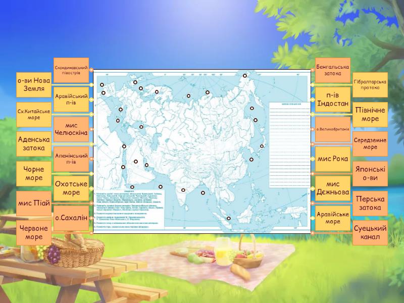 Крайні точки, острови,півострови,моря,затоки,протоки Євразії
