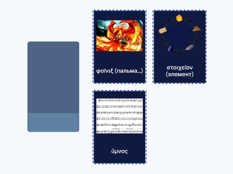 ἀγαθός (добрый), στρατηγός, αἰθήρ (верхний воздух), αἱρετικός, ἄνθος (цветок), ἀριθμός, αὐτός (сам), Βάρβαρος (бормочущий, тот, кто непонятно говорит --> чужеземец), βάλλω (бросаю): βαλ-/βολ-/βλη-, βαρύτονος (низко звучащий), βασιλίσκος (царёк), Βενιαμίν, βιβλιοθήκη, δαίμων (божество), δῆμος (народ), Ἑβραῖος, εὐ- (хорошо, благо), εὕρηκα (я нашел), ἡγεμών (начальник), ἦπαρ / Р.п. ἥπατος (печень), θέατρον, θεραπεύω (лечить), θερμός (теплый, горячий), θέσις (место, положение), θησαυρός (сокровищница), θρόνος (престол), ἵππος (конь), κένταυρος (убивающий быков), κεφαλή (голова), κῆτος, κροκόδειλος, λευκός (белый), μήτηρ (мать), μυθολογία (повествование), νάρκισσος, οἶκος (дом), οἶστρος (жало, бешенство), ὁμοιοπάθεια, πάθος (страсть, страдание), πλανήτης (блуждающий), ποιητής (творец), ῥυθμός, Σειρήν, στοιχεῖον (элемент), σύμβολον (знак, примета), σύστημα (сочетание), σφαῖρα, ὕαινα (кабаниха), ὕδωρ, ὕμνος, ὑπερ- (пере-, через-), ὕπνος (сон), ὑστερία, φόβος (страх), φοῖνιξ (пальма...), χθών (земля), χίμαιρα (коза), Ἀθῆναι, αἷμα (кровь), βακτηρῐᾱ (палка, трость), βῆτα, γυμνάσιον (место для упражнений), εἰρήνη (мир, спокойствие), Ἡρακλῆς (слава Геры), θεός (бог), Θῆβαι, κατάβασις (схождение вниз), κάθαρσις (очищение), κράβατος (ложе, одр), κρίσις (решение, исход), κυνικός (собачий), Μοῦσα (пение), ὀρχήστρα (круглая площадка между скеной и зрительскими местами, где выступал хор), παράσιτος (сотрапезник), σκηνή (шатер), ὑάκινθος , χείρ (рука), Λάρισα (чайка), αἴσθησις (чувство), ἡσυχία (покой, безмолвие), χαρακτήρ (оттиск, печать), ἁρμονία (слаженность), ἴσος (равный), παῖς, παιδός (дитя), ὑποτείνουσα (протянутая против), κομήτης (волосатый, косматый, длинноволосый), πάνθηρ (всезверь), χαμαιλέων (земляной лев), ἀήρ (воздух), εἰρωνεία (притворство), ὑπο- (под, снизу, низко-), ἀρχή (начало, начальство, власть), πνεῦμα (воздух, дуновение), Εὐρώπη.