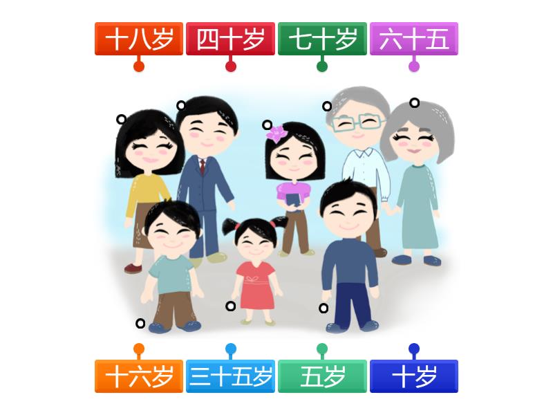 三十五岁, 四十岁, 十六岁, 七十岁, 六十五, 十岁, 五岁, 十八岁.