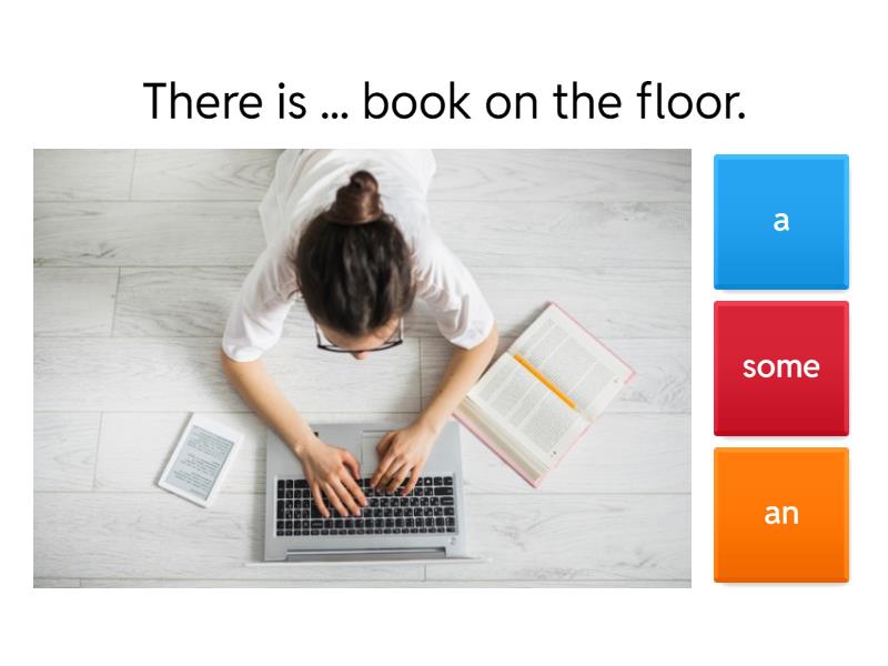 1) There is ... book on the floor. a) a b) some c) an 2) Are there ... pencils in the pencril case? a) some b) an c) any 3) There isn't ... cafeteria in our school. a) an b) a c) some 4) There aren't ... posters on the wall. a) some b) an c) any 5) Is there ... apple in the kitchen? a) an b) a c) some 6) There are ... CDs on the table. a) some b) any c) a 7) There is ... cat on the chair. a) a b) an c) any 8) There isn't ... gym in their school. a) some b) a c) an 9) There is ... orange. a) an b) a c) any