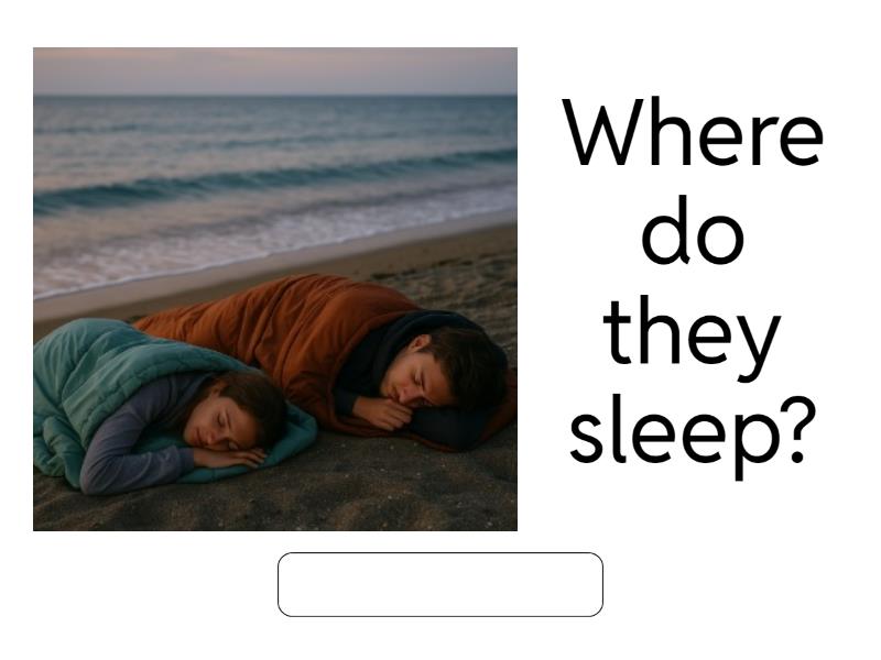 Where does she keep her shoes?, Where do they sleep?, What does she sweep? , Where does the snake creep? , Does she weep? .