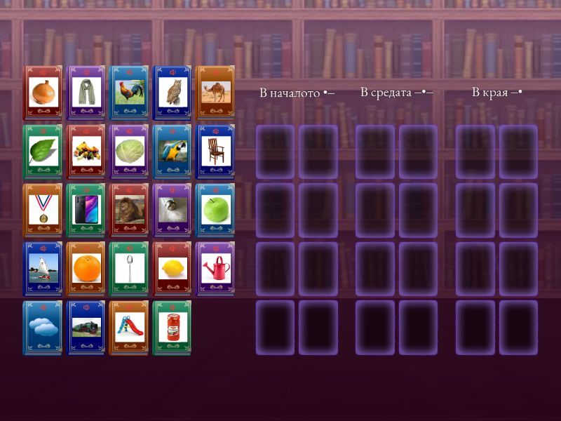 В началото •–: , , , , , , , , В средата –•–: , , , , , , , , В края –•: , , , , , , , ,