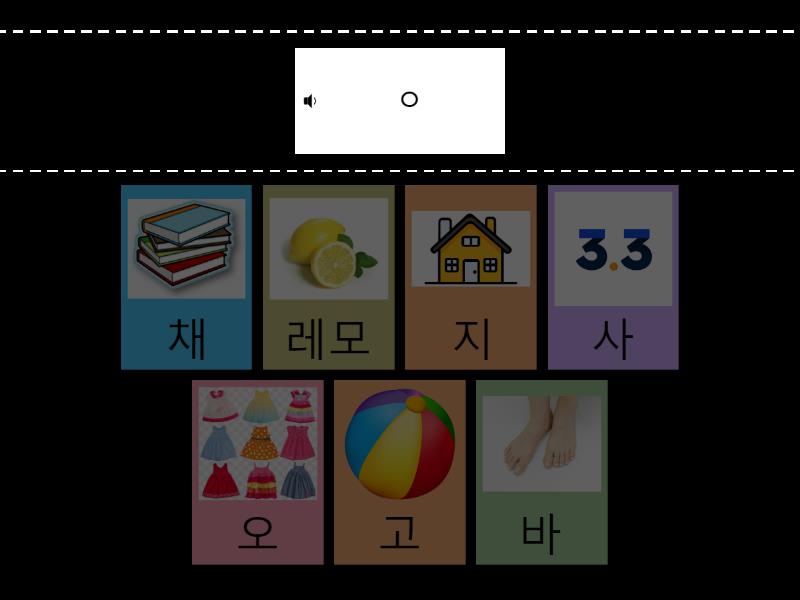 고 - ㅇ, 바 - ㄹ, 채 - ㄱ, 레모 - ㄴ, 오 - ㅅ, 사 - ㅁ, 지 - ㅂ,
