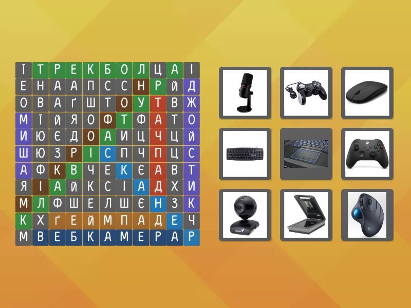клавіатура, миша, тачпад, сканер, мікрофон , вебкамера, ґеймпад, трекбол, джойстик,