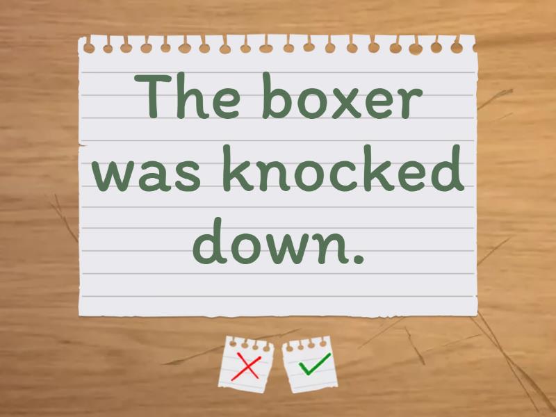 Breakfast was cooked by our mother., The new rule was explained to us at the English lesson., The story was written by Chekhov., Yesterday the sports centre was visited by lots of people., This sports game is often played at P.E. lessons., The ball was thrown over the fence., The boxer was knocked down., I was born in Moscow., They will be trained by a famous coach., I will be sent to the competition tomorrow.,