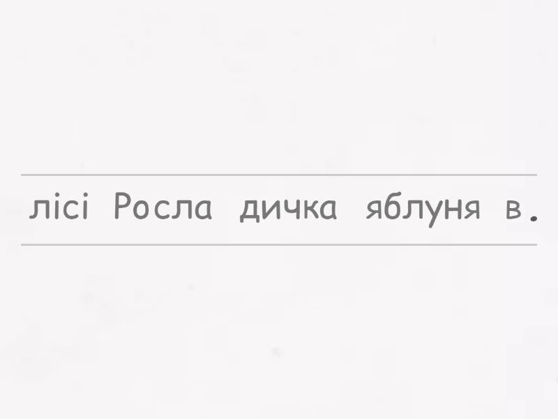 Росла в лісі дичка яблуня., Восени впало з неї яблучко., Пташки подзьобали його., Зиму пролежало під снігом, зернятко сховалося в землю., Навесні стало проростати., Радіє сонцю молода яблунька.,