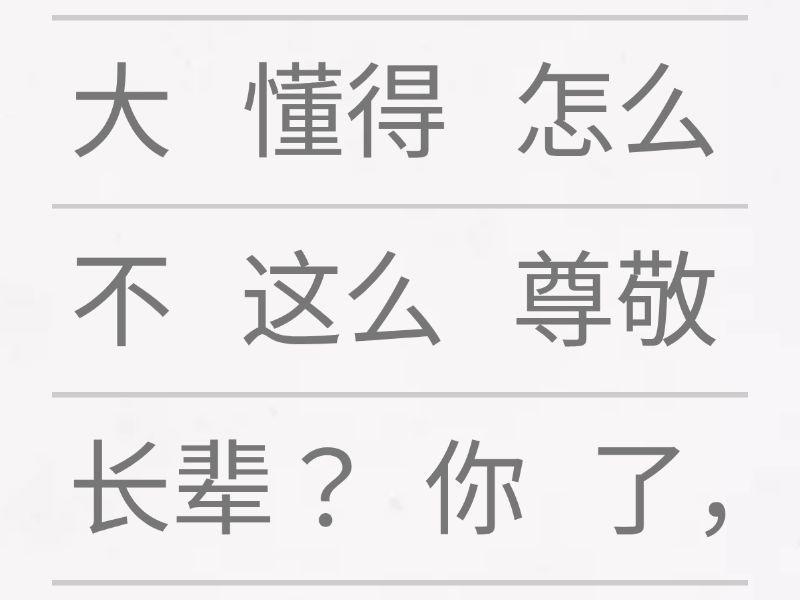 你 这么 大 了, 怎么 不 懂得 尊敬 长辈?, 看见 有人 偷 东西, 你 怎么 不 叫 警察?, 我 很 后悔, 不应该 一直 玩游戏, 更 不应该 跟妈妈 发脾气。, 我 很 后悔, 不应该 和小安 吵架, 更 不应该 弄坏 他的 飞机。,