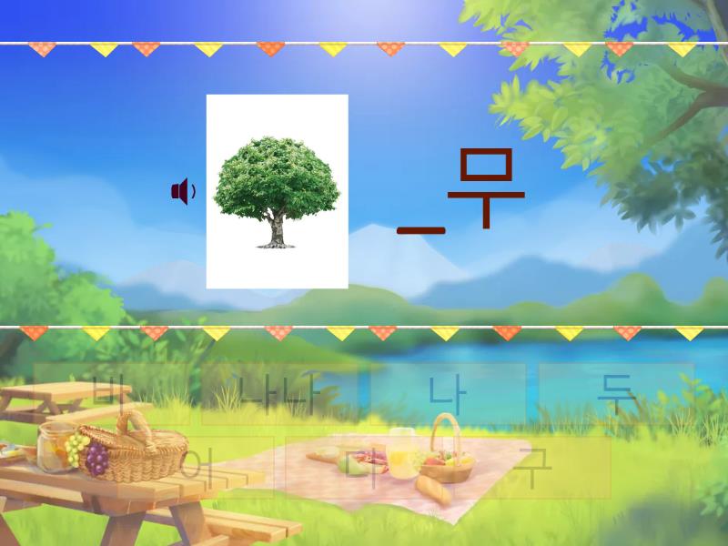 나 - _무, 다 - _리, 두 - 구_, 구 - 도_, 바 - -다, 나나 - 바--, 어 - -머니,