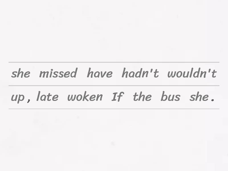 If she hadn't woken up late, she wouldn't have missed the bus. , She would have prepared more if she hadn't had a busy week. , She would have had a coffee if they hadn't run out of coffee beans. , She wouldn't have got wet if she had taken her umbrella. , Her boss would have been happy if she had been more reliable., If he had studied more, he would have received a better grade., If they had won the match, they would have become famous., If she hadn't completed the course, she wouldn't have got the job., If Max had been nicer to her, they would have had a better relationship.,
