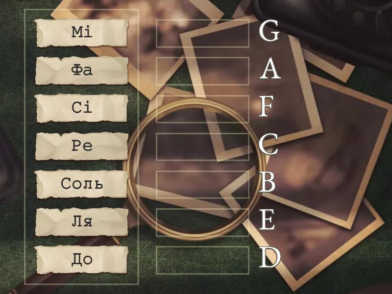 До - С, Ре - D, Мі - E, Фа - F, Соль - G, Ля - A, Сі - B,