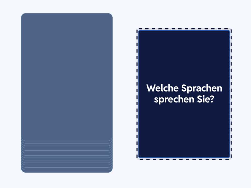 Welche Sprachen sprechen Sie?, Wie ist Ihre Postleitzahl?, Was sind Sie von Beruf?, Wo wohnen Sie?, Wann haben Sie Geburtstag?, Was tragen Sie gern zu Hause?, Wie spät ist es jetzt?, Wie ist die Konjugation von „können” im Präsens?, Bilden Sie einen Satz mit dem Verb „einladen”., Bilden Sie einen Satz mit dem Verb „anrufen”., Nennen Sie 3 Verkehrsmittel mit Artikel und Pluralform., Nennen Sie 3 Monate., Nennen Sie 3 Jahreszeiten., Ist das ein Bus? Nein, das ist k___ ___. | Was ist das? Das ist ___ ___., Formulieren Sie eine Wegbeschreibung!.