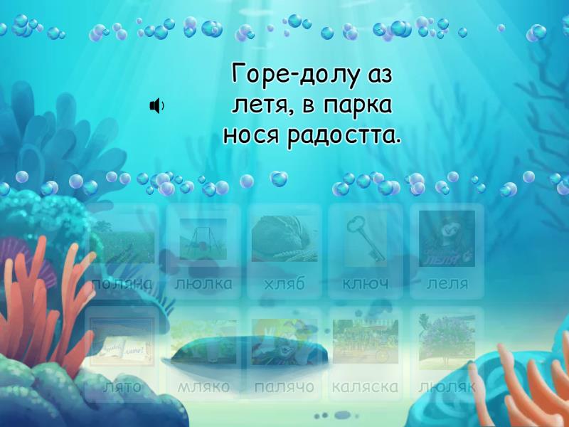 люлка - Горе-долу аз летя, в парка нося радостта., лято - Топло, слънчево и мило, с морски пясък ме е покрило. Кой сезон е това?, хляб - В пекарната ухая аз, на масата съм в късен час. На филийки ме ядеш. , ключ - Малък съм, метален, зная, но вратата отключвам и заключвам зная., поляна - Зелена рокля, пъстра премяна, с цветя и билки съм обляна., мляко - Бяла течност в чаша спя, сутрин костите ти аз каля., палячо - С нос червен и дрехи шарени, правя смешки аз големи., леля - На мама или татко е сестра, идва ми на гости с добрина., люляк - Ухая в пролетния ден, в лилаво цял съм пременен., каляска - С коне съм впрегната, блестя, в мен принцесата се вози чак до сутринта.,
