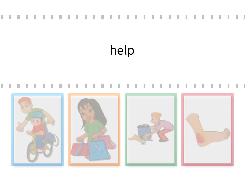help, hurt, carry bags, pick up rubbish,