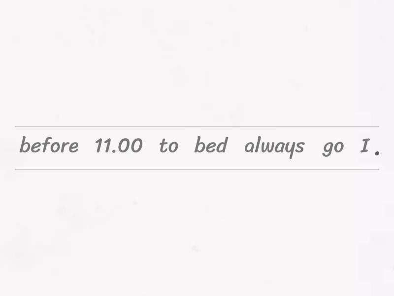 I always go to bed before 11.00., Kate hardly ever sees her family., We never go shopping on Saturdays., I go to the dentist's twice a year., They sometimes have breakfast in bed., I usually listen to the radio in the car., Alan runs in the park every day., Sam is often late for work., John doesn't often go to the theatre., I visit my mum once a month.,