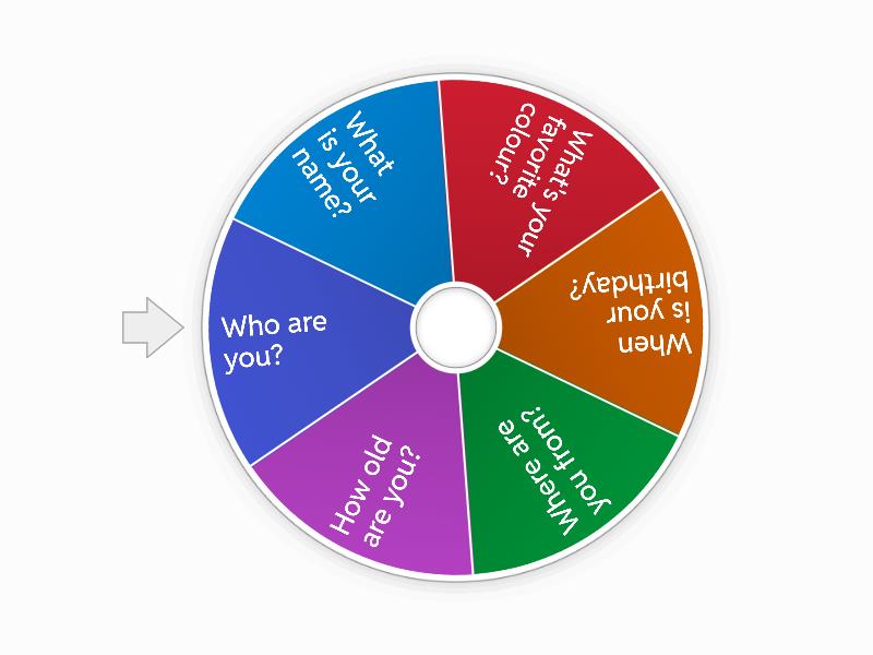 1) What is your name? 2) What's your favorite colour? 3) When is your birthday? 4) Where are you from? 5) How old are you? 6) Who are you?