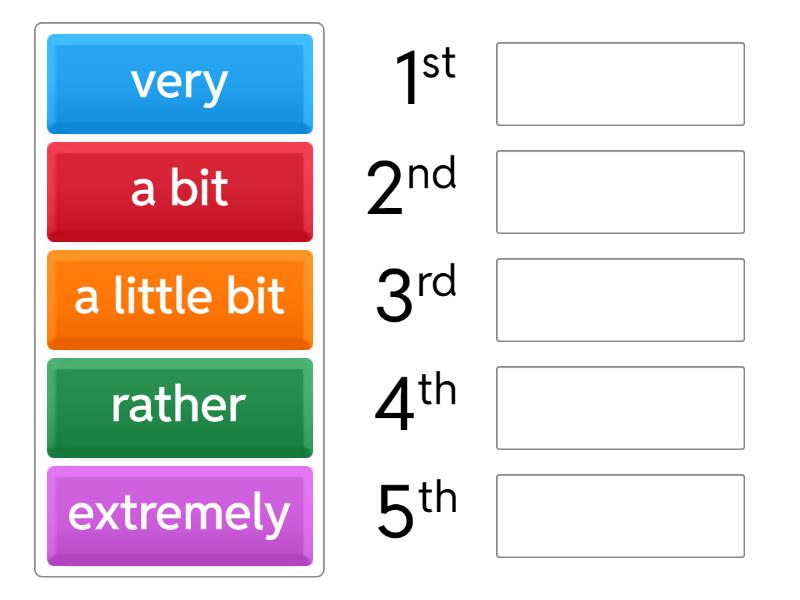 extremely, very, rather, a bit, a little bit.