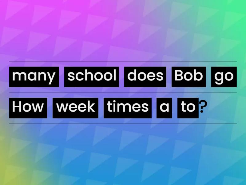 How many times a week does Bob go to school?, Bob goes to school twice a week, How many times a year do you visit Moscow?, I visit Moscow once a year, How many times a week have you got Natural Study?, I have got Natural Study three times a week, How many times a month can you swim in the river?, I can swim in the river four times a month,