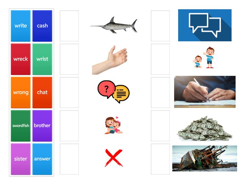chat, cash, write, wrist, wreck, wrong, answer, swordfish, sister, brother,