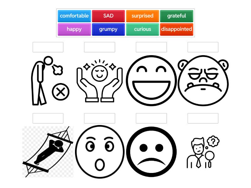 happy, comfortable, curious, disappointed, grateful, grumpy, surprised, SAD,
