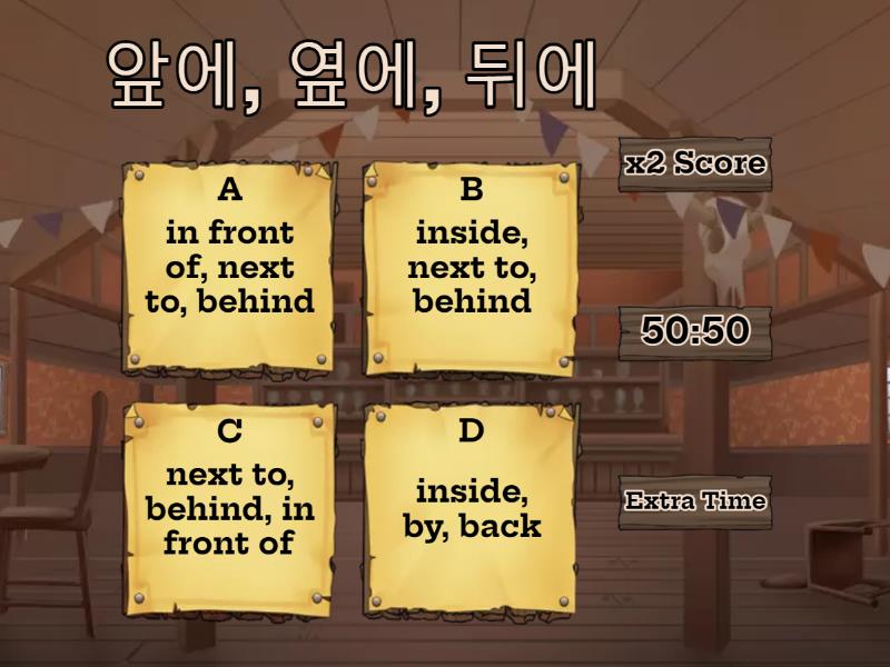 1) What grade are you in? a) I'm in the sixth grade. b) I'm in the cixth grade. c) I'm in the sixfth grade. d) I do not go to school. 2) Which is a fruit? a) Carrot b) Apple c) Potato d) Broccoli 3) Choose the correct sentence. 올바른 문장 선택 a) My favorite animal is science. b) My favorite subject is badminton. c) My favorite color is blue. d) My favorite teecher is Taariya Teecher. 4) My favorite subject is ___________. I like to ______ _________. a) Science, play tennis. b) P.E, play dodgeball. c) Art, look at the stars. d) English, draw pictures. 5) Go ________ and ______ _______. a) straight, tern, left. b) straight, turn, right. c) strait, turn, right. d) straight, turn, write. 6) 앞에, 옆에, 뒤에 a) in front of, next to, behind b) inside, next to, behind c) next to, behind, in front of d) inside, by, back 7) Which is a day of the week? a) January b) Monday c) April d) Summer 8) Excuse me. a) 셀러리 b) 샐러드 c) 실례합니다. d) 제 이름은 실리에입니다 9) ______ is the bank? a) Were b) Wair c) Wear d) Where 10) It is __ _____ right. a) at your b) on your c) in your d) by your 11) I will go fishing. a) b) c) d) 12) I will visit my grandparents in Jeju-Do. a) Cold b) Warm c) Cool d) Mild 13) I will travel to many places and I'll ______ ________ _________. a) took many pictures. b) take meny pictures. c) take many picktures. d) take many pictures. 14) 무엇, 언제, 어디, 왜 a) What, where, when, why b) What, when, where, why c) Which, why, when, what d) What, why, when, where 15) Choose the correct spelling. 올바른 철자를 선택하세요. a) Museum b) Mueseum c) Mewseum d) Museim 16) What is the opposite (반대로) of 'big'? a) Small b) Tiny c) Huge d) Large 17) Which sentence is in the future tense? 미래 시제는 어떤 문장인가요? a) I went to Jeju-do to visit my grandparents. b) I bought many delicious cakes. c) I will visit my grandparents for Chuseok. d) I saw many cats in Jeju-do. 18) What is the first month of the year? a) February b) March c) January d) April