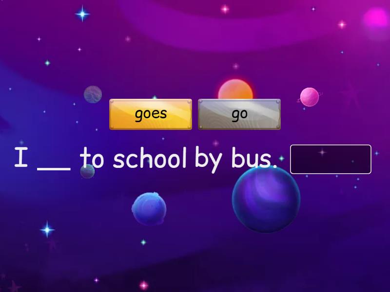 I __ to school by bus. ____ They __ to school by car. ____ She ____ to school on foot. go ____ I go to school __ train. ____ He goes to school __ foot. ____ ____ your brother go home by bike? ____ We __ to school by scooter. ____ I __ to the library by bus. ____ He goes to the library __ train. ____ We __ to school by bike. ____