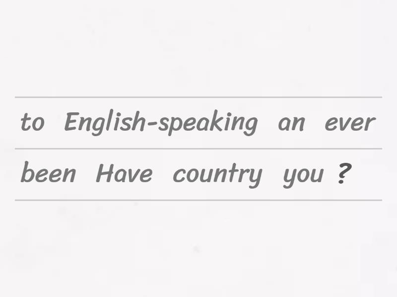 Have you ever been to an English-speaking country ?, No, I haven't. I have never been to the United Kingdom., Yes, I have. I've been to Spain., Have you ever been to London ?,