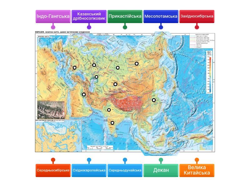Східноєвропейська, Західносибірська, Велика Китайська, Прикаспійська, Індо-Гангська, Месопотамська, Декан, Середньосибірське, Казахський дрібносопковик, Середньодунайська.