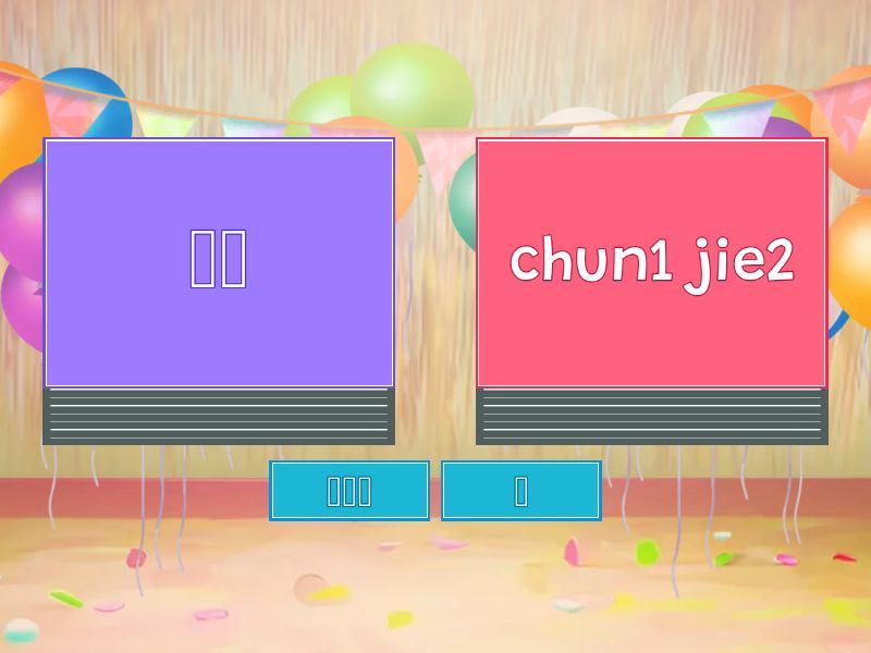春節 - chun1 jie2, 吃年糕 - chi1 nian2 gao1, 清明 - qing1 ming2, 把墓掃 - ba3 mu4 sao3, 端午 - Duan1wu3, 包粽子 - bao1 zong4 zi, 中秋 - Zhong1qiu1, 明月照 - ming2 yue4 zhao4,
