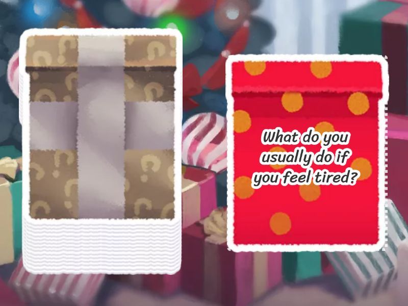 What do you usually do if you feel tired?, What happens if you drink coffee at night?, If it rains, what do people in your town normally do?, What do you do if you forget your phone at home?, If you are stressed, what helps you relax?, What does your family cook if someone is sick?, If your internet is slow, what do you do?, What happens if you don’t eat breakfast?, If you wake up late, what do you usually do next?, What do children in your country do if they get good grades?, What do you do if your friend calls you during work/study time?, If it’s very hot, how do you stay cool?, What do you do if you lose something important?, What happens if you eat spicy food?, If you are bored, what do you usually do?.