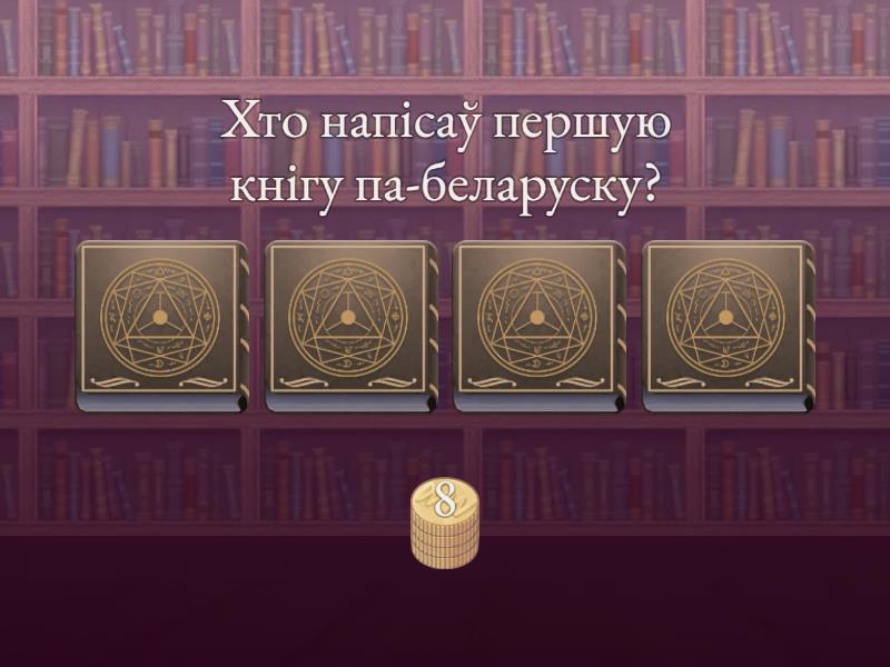 1) Хто напісаў першую кнігу па-беларуску? a) Янка Купала b) Цётка c) Францыск Скарына d) Кастусь Каліноўскі 2) Як называлася першая друкаваная кніга на беларускай мове? a) Статут b) Канстытуцыя c) Псалтыр d) Біблія 3) Гэты год лічыцца годам пачатка кнігадрукавання ў Беларусі a) 1571 b) 1517 c) 1157 d) 1751 4) На адным з партрэтаў менавіта сам Францыск Скарына a) b) c) d) 5) У адным з гэтых гарадоў Італіі Скарына атрымаў ступень доктара медыцыны a) Піза b) Фларэнцыя c) Рым d) Падуя 6) У гэтым горадзе якраз і была надрукавана першая кніга Францыскам Скарынай a) Кіеў b) Масква c) Прага d) Бабруйск 7) У гэтым горадзе Беларусі нарадзіўся першадрукар a) Полацк b) Слуцк c) Мозыр d) Пінск
