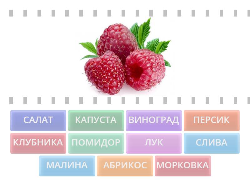 МАЛИНА, КЛУБНИКА, АБРИКОС, КАПУСТА, ЛУК, САЛАТ, ПОМИДОР, ПЕРСИК, ВИНОГРАД, СЛИВА, МОРКОВКА,