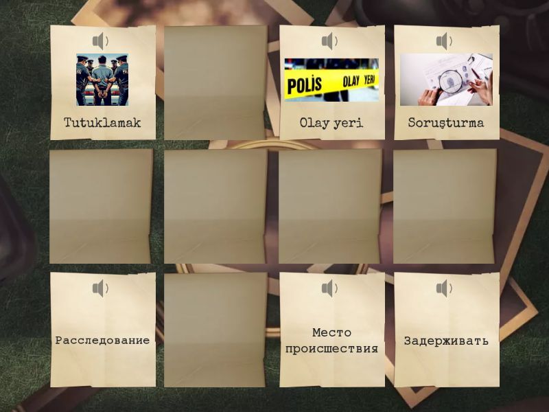 Olay yeri - Место происшествия , Soruşturma - Расследование, Tutuklamak - Задерживать, Mahkeme kararı - Решение суда, Göç İdaresi Başkanlığı - Главное управление по вопросам миграции, Doğum belgesi - Свидетельство о рождении,