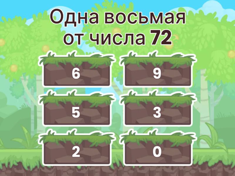 1) Одна восьмая от числа 72 a) 6 b) 9 c) 5 d) 3 e) 2 f) 0 2) Одна треть от числа 18 a) 2 b) 8 c) 4 d) 6 e) 1 f) 5 3) Одна пятая от числа 25 a) 5 b) 7 c) 1 d) 9 e) 6 f) 3 4) Одна вторая от числа 24 a) 7 b) 9 c) 12 d) 10 e) 15 f) 3 5) Одна десятая от числа 80 a) 7 b) 3 c) 1 d) 8 e) 5 f) 4 6) Одна шестая от числа 48 a) 7 b) 9 c) 2 d) 5 e) 3 f) 8 7) Одна седьмая от числа 63 a) 9 b) 6 c) 7 d) 4 e) 2 f) 5 8) Одна девятая от числа 81 a) 7 b) 9 c) 3 d) 6 e) 4 f) 8 9) Одна вторая от числа 18 a) 4 b) 7 c) 8 d) 3 e) 9 f) 1 10) Одна четвёртая от числа 28 a) 2 b) 6 c) 7 d) 9 e) 3 f) 5