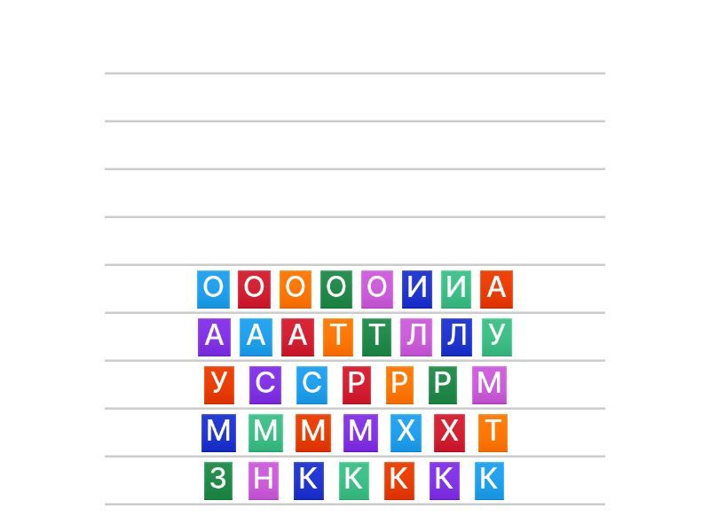 О, О, О, О, О, И, И, А, А, А, А, Т, Т, Л, Л, У, У, С, С, Р, Р, Р, М, М, М, М, М, Х, Х, Т, З, Н, К, К, К, К, К.