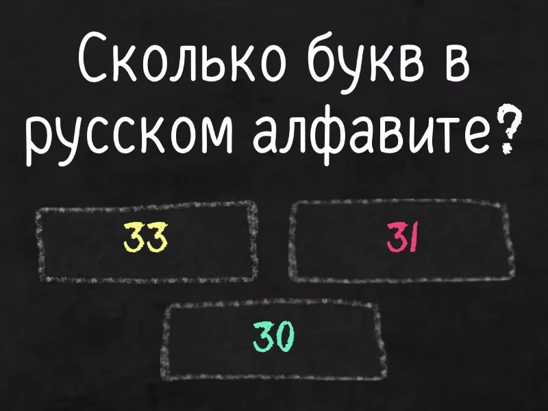 1) Сколько букв в русском алфавите? a) 33 b) 31 c) 30 2) Сколько согласных букв? a) 23 b) 20 c) 21 3) Сколько гласных звуков? a) 6 b) 4 c) 3 4) Какой первый звук в слове Яблоко? a) Я b) Й 5) Какой последний звук в слове Сапог? a) Г b) К 6) На какую букву в русском языке не могут заканчиваться слова? a) Щ b) Ь c) Ъ 7) Как называется часть речи, обозначающая действие предмета? a) Имя существительное  b) Наречие c) Глагол 8) Как называется главный член предложения, отвечающий на вопрос «кто?» или «что?» a) Дополнение b) Подлежащее c) Определение 9) Какая часть слова служит для связи слов в предложении? a) Окончание b) Корень c) Суффикс 10) Какой член предложения чаще всего в предложении выражен именем прилагательным? a) Определение b) Подлежащее c) Обстоятельства