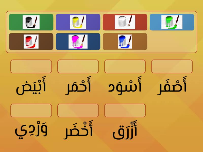 أَزْرَق, أَخْضَر, وَرْدِي, أَحْمَر, أَسْوَد, أَصْفَر, أَبْيَض,