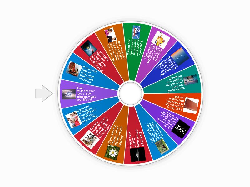 If you went back in time, what year would you go to?, If you could make one change to the world, what would you do?, What would you like to do if you were a member of the opposite sex for one day?, If you could change your name, what name would you choose?, If you could speak three other languages. What would they be? Why?, If you could decide what happens in your life tomorrow, what would you want to happen?, Where would you live if you could live anywhere in the world?, If you found a suitcase full of $1,000,000, what would you do?, If you had 25-hour days (while everyone else continued to have 24-hour days), what would you do with the extra time?, If you were walking through the forest and you suddenly saw a bear, what would you do?, If you saw a UFO, how would you feel?, If you were a flower, what flower would you be?, If people could speak to animals, would they be able to eat them?, If you had 10 children, how different would you be your life?, If you could see your future, how different would your life be?.