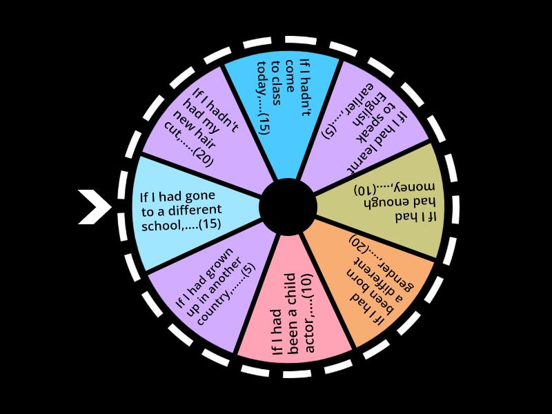 If I hadn't had my new hair cut,.....(20), If I hadn't come to class today,....(15), If I had learnt to speak English earlier,....(5), If I had had enough money,....(10), If I had been born a different gender,....(20), If I had been a child actor,....(10), If I had grown up in another country,......(5), If I had gone to a different school,....(15).