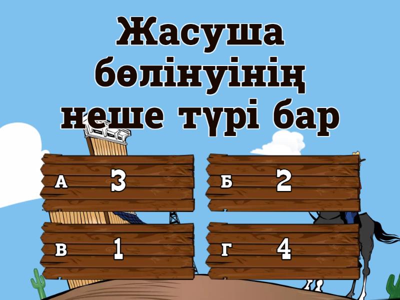 1) Жасуша бөлінуінің неше түрі бар a) 3 b) 2 c) 1 d) 4 2) Дене жасушаларының бөлінуі a) мейоз b) амитоз c) митоз d) гамета 3) Жыныс жасушаларының бөлінуі a) мейоз b) амитоз c) митоз d) гамета 4) Қарапайымдардың бөлінуі a) мейоз b) амитоз c) митоз d) гамета 5) Адамда хромосома саны a) 22 жұп b) 23 жұп c) 45 d) 47 6) Жыныс жасуша a) зигота b) нейрула c) гамета d) бластула 7) Ядроның тікелей бөлінуінен пайда болады a) митоз b) мейоз c) амитоз d) гамета 8) Жыныс жасушасы a) гамета b) зигота c) нейрула d) бластула