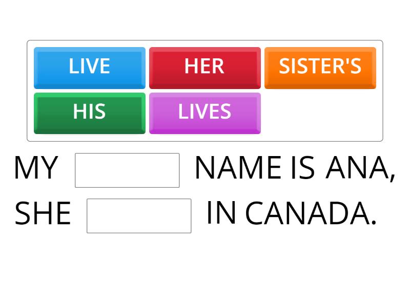 MY ____ NAME IS ANA, SHE ____ IN CANADA. PETER ____ 15 YEARS OLD. ____ A STUDENT AND HE ____ TO ____ BASKETBALL. MY PARENTS ____ 3 CHILDREN, ____ NAMES ____ PETER, BILLY AND KATE. WHAT'S ____ JOB? ____ A DOCTOR, HE ____ IN A HOSPITAL. HE ____ TO WORK AT 8 O'CLOCK. I ____ UP AT 9 O'CLOCK. AFTER THAT, I ____ BREAKFAST AT 9:30 AND I ____ TO SCHOOL AT 10 O'CLOCK. I ____ SCHOOL AT 3 P.M. MY BEST FRIEND ____ AN ACTRESS, SHE ____ AT HOLLYWOOD AND SHE ____ TENNIS WITH ____ CHILDREN. WHAT'S ____ NAME? HER ____ MARRY. HOW OLD IS ____? SHE'S 25 YEARS OLD. WHAT TIME ____ SHE ____ TO SCHOOL? WHERE ____ YOU LIVE? I ____ IN SAO PAULO. WHAT'S ____ FATHER'S NAME? ____ NAME'S LUKE. HOW OLD IS ____? HE'S 40 YEARS OLD. I ____ TO PLAY VOLLEYBALL, BUT ____ SISTER ____ SOCCER. ____ A SOCCER PLAYER. MY BROTHER ____ A TEACHER, HE ____ MATH. HE ____ ONE DAUGHTER, ____ NAME'S LINDA. ____ 5 YEARS OLD. BETTY IS ____ WIFE, SHE'S 37 YEARS OLD, SHE'S ____ ENGINEER.