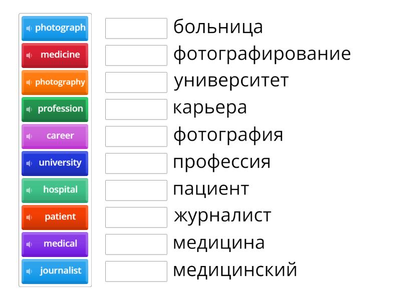 journalist - журналист, career - карьера, profession - профессия, medicine - медицина, medical - медицинский, hospital - больница, university - университет, patient - пациент, photography - фотографирование, photograph - фотография,